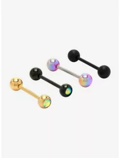 14G Steel Black Stone Tongue Barbell 4 Pack