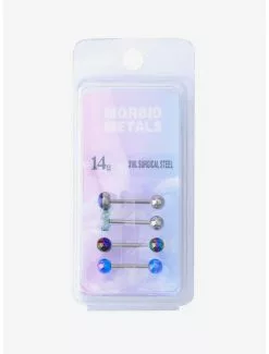 14G Flower Ball Tongue Barbell 4 Pack