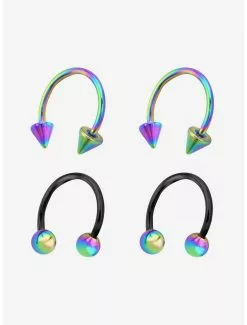 14G Steel Black & Anodized Circular Barbell 4 Pack