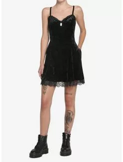 COSMICAURA Black Crushed Velvet Hood-And-Eye Mini Dress
