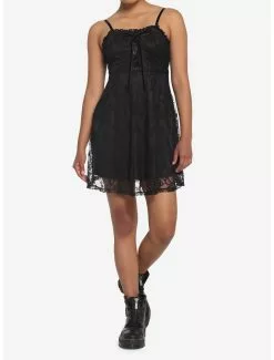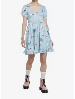 Forest fashion just got a whole lot trendier! This soft dress has a forest green body, with a pleated skirt and black lace trim on the sleeves and collar. Some forest friends are also stitched on the collar, like snails, mushrooms and frogs! Featuring heart-shaped buttons down the chest and side pockets, too!