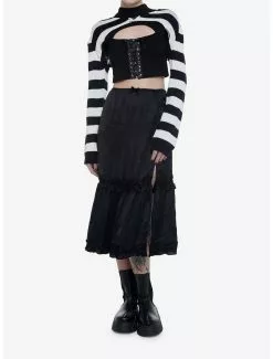 Black & Red Stripe Mesh Shoulder Crop Girls Hoodie