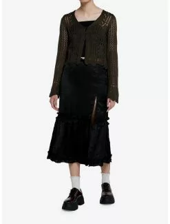 Keep your look dark and dreamy with this black maxi dress. It features smocking across the bust with dainty bow detailing, puff sleeves and side seam pockets. Pair it with a brimmed hat to complete your witchy ‘fit!