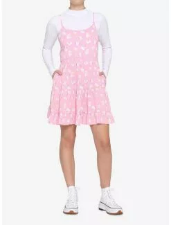Wear your heart all over with this white dress featuring black hearts print, heart-shaped button closure, collar with black lace trim and pockets.